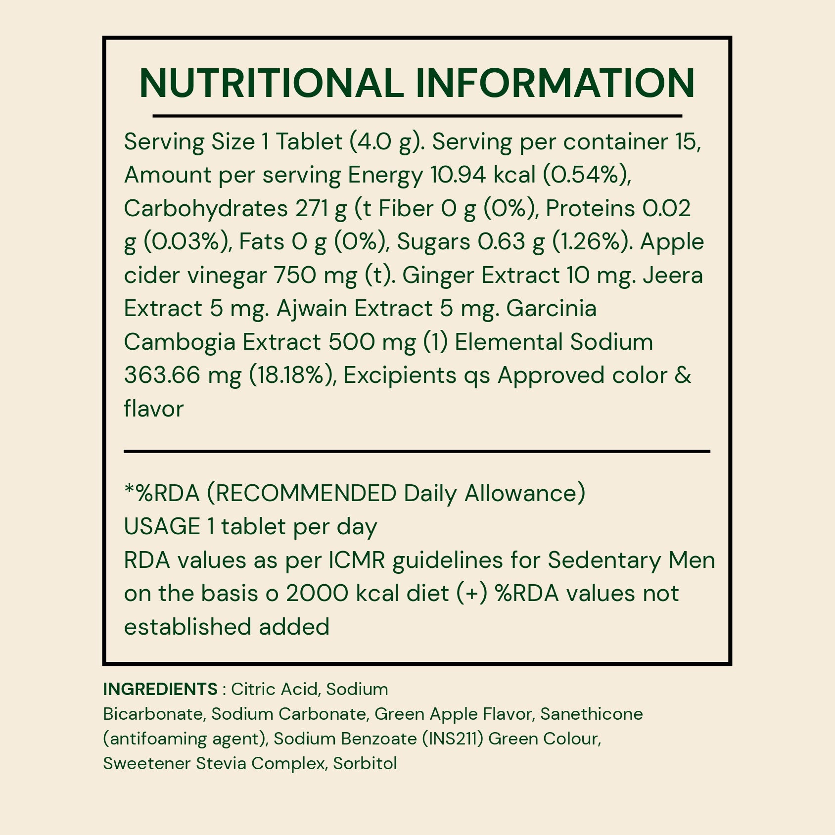 Our Apple Cider Vinegar Effervescent Tablets are designed with Advanced Absorption Technology, allowing key ingredients like Jeera, Ajwain, Ginger, and Garcinia Cambogia to withstand stomach acids and reach the intestinal tract for optimal effectiveness. This ensures better digestion, metabolism, and gut support naturally.
